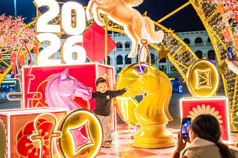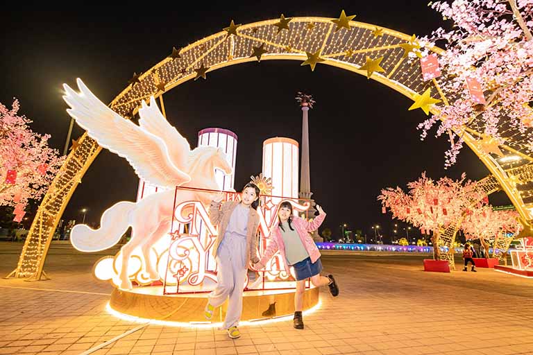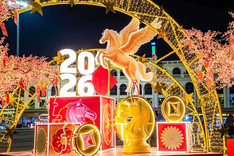 Ngay khi đặt chân đến Phố đi bộ Vũ Yên, ấn tượng đầu tiên chính là sự choáng ngợp trước không gian trang trí kỳ công. Quảng trường Châu Âu vốn dĩ đã mang vẻ đẹp sang trọng và cổ điển nay lại càng trở nên lung linh hơn với những tiểu cảnh Tết mang đậm dấu ấn “Tết Mã”. Những nhành đào thắm, mai vàng rực rỡ xen lẫn các biểu tượng văn hóa truyền thống được sắp đặt khéo léo, tạo nên những góc check-in không góc chết.