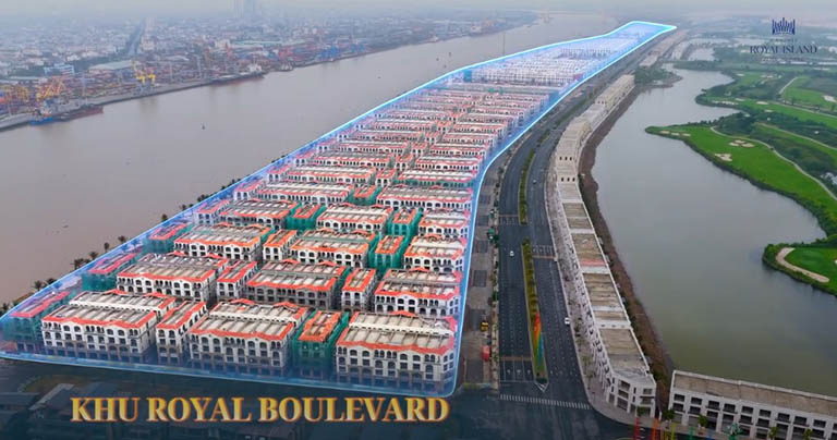 Tại Royal Boulevard, không gian dường như bừng sáng hơn khi các dãy phố đang trong giai đoạn hoàn thiện mặt ngoài. Việc chăm chút cho từng đường nét kiến trúc giúp phân khu này dần lộ diện vẻ sang trọng và hiện đại của một trục đại lộ thương mại huyết mạch.