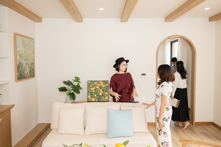Ngay khi bước vào, khách hàng lập tức bị choáng ngợp. Kiến trúc Địa Trung Hải tinh tế và nội thất, vật liệu cao cấp, tỉ mỉ trong từng chi tiết đã biến Nhà mẫu thành một không gian sống tinh hoa thực thụ.