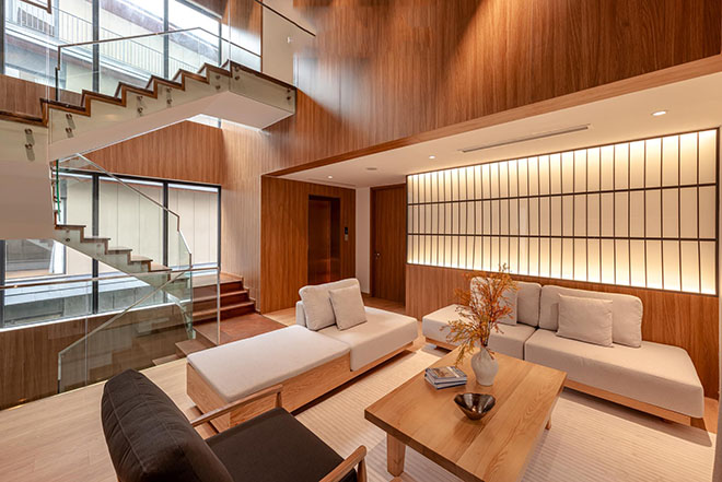 – Phong cách kiến trúc: Nhật Bản hiện đại (Modern Japanese Style), tập trung vào sự tối giản, sử dụng vật liệu tự nhiên và tối ưu hóa ánh sáng “Komorebi” (ánh nắng xuyên qua kẽ lá).