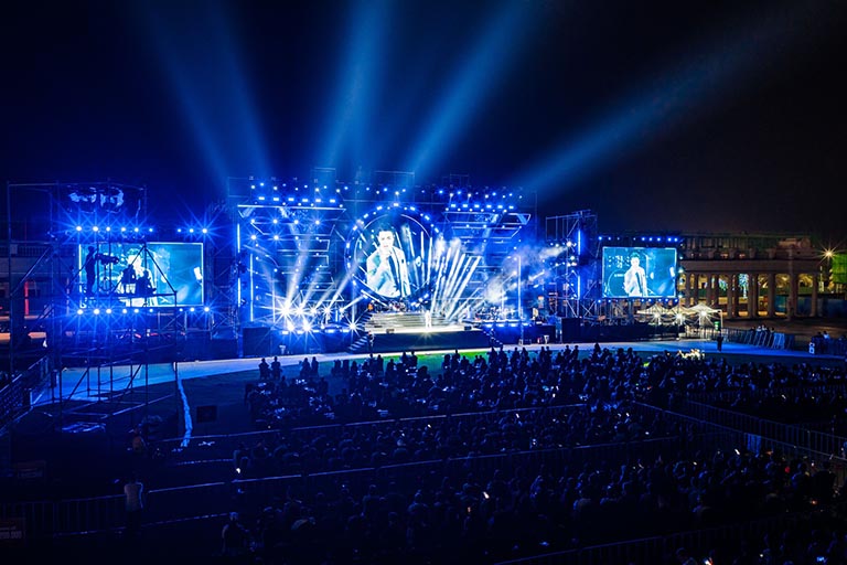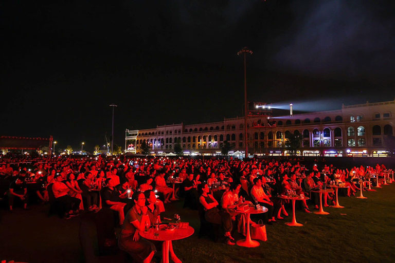 Quảng trường Châu Âu tại Phố đi bộ Vũ Yên đã chính thức biến thành tâm điểm ánh sáng và âm nhạc của toàn thành phố khi The Royal Show – Đêm nhạc Khổng Tước chính thức khai màn, thu hút hàng nghìn khán giả đến thưởng thức. Sân khấu đêm nhạc không chỉ là nơi trình diễn, mà là một tuyệt tác kiến trúc thị giác – lấy cảm hứng từ đôi mắt ngọc lộng lẫy, kiêu sa của chim Khổng Tước. Sự kết hợp đỉnh cao giữa hệ thống LED 3D tiên tiến và hiệu ứng ánh sáng được tính toán tỉ mỉ đã tạo nên một vũ điệu ánh sáng mãn nhãn, thắp sáng rực rỡ cả Thành phố Đảo Hoàng Gia, biến không gian đêm thành một cung điện nghệ thuật ngoài trời.