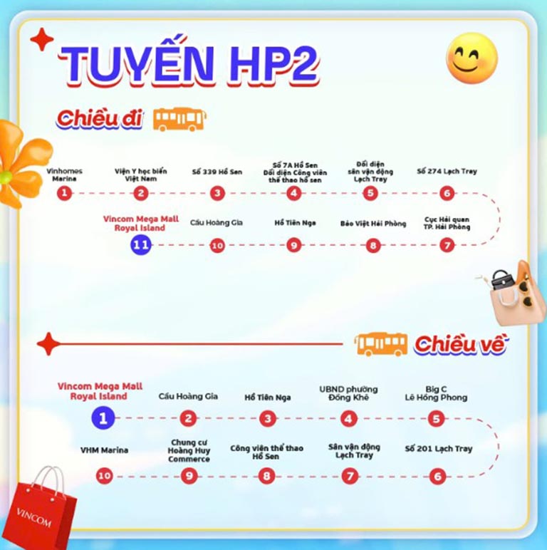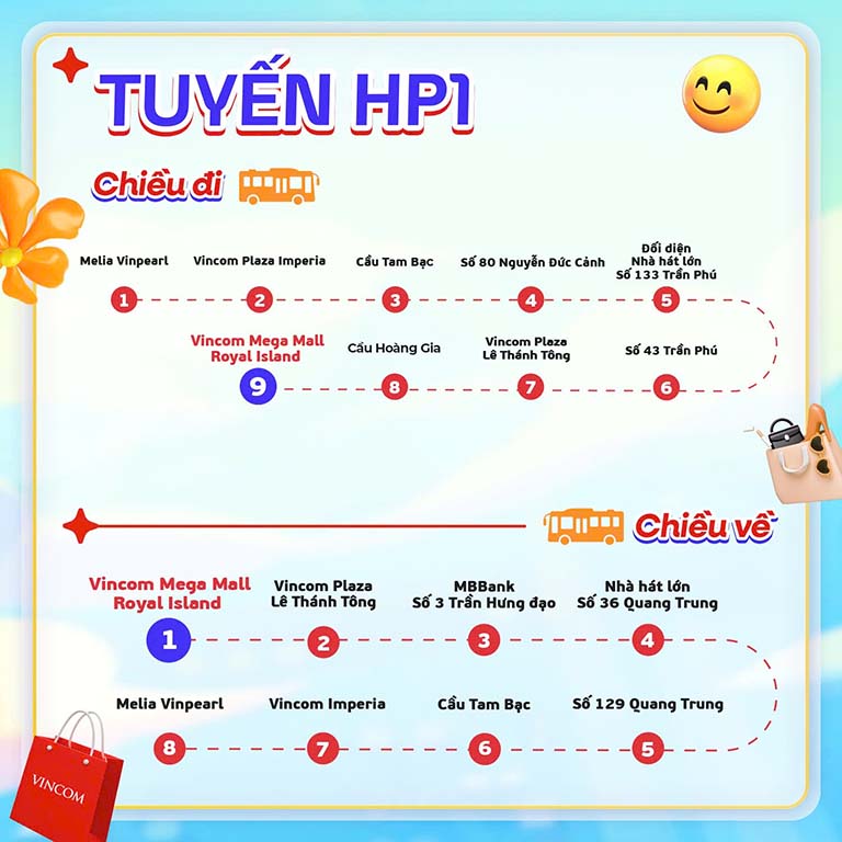 Lịch trình hoàn hảo: Tuyến HP1 & HP2 hoạt động từ 08:00 đến 22:00 vào mỗi Thứ Bảy, Chủ Nhật và ngày lễ.