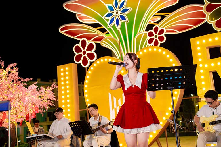 Nếu buổi chiều là sự lên ngôi của sắc màu thì khi hoàng hôn buông xuống, âm nhạc lại chiếm lĩnh tâm hồn. Đêm nhạc The River Love Show #8 diễn ra bên bờ sông di sản, nơi mặt nước lấp lánh phản chiếu những ánh đèn huyền ảo, đã thực sự chạm đến phần mềm mại nhất trong lòng khán giả.